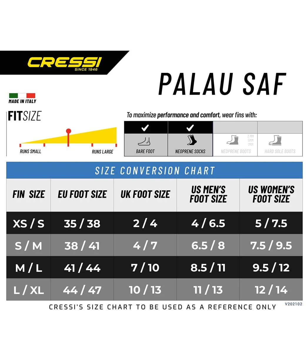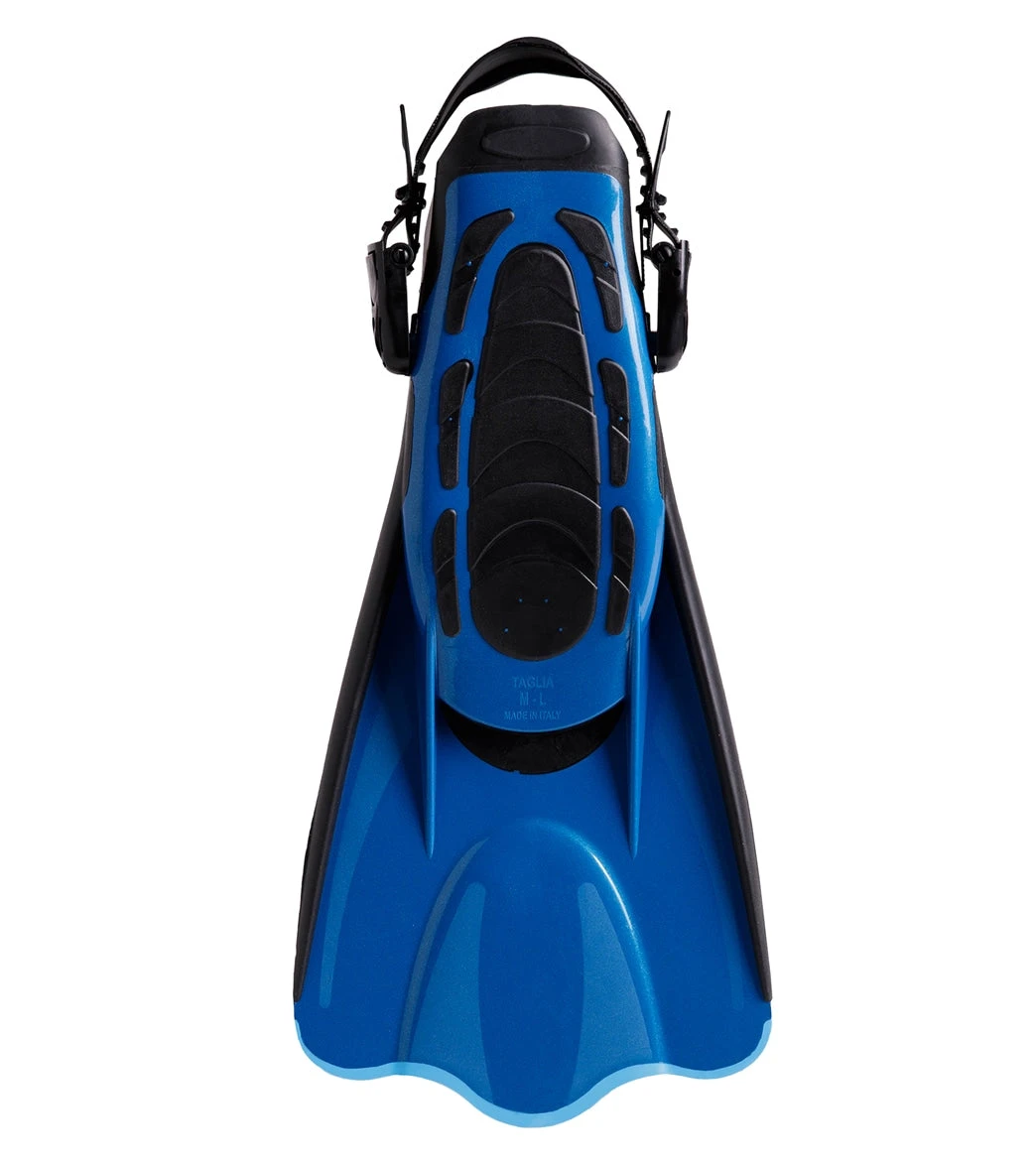 The Cressi Palau Short Adjustable Travel Fin features a shorter blade for maximum propulsion, ideal for swimming and snorkeling.