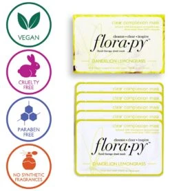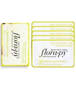Destress and unwind with the Florapy Clear Complexion Aromatherapy Sheet Mask 5 Count, Dandelion Lemongrass.