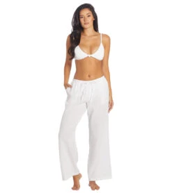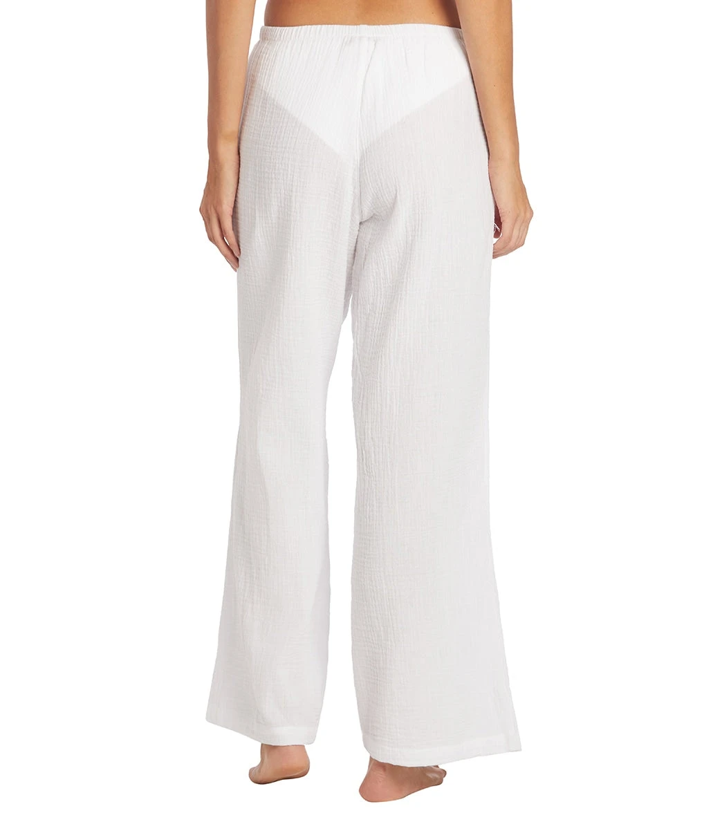 - Solid cotton double knit gauze pull-on beach pant with side pockets and tie at waist