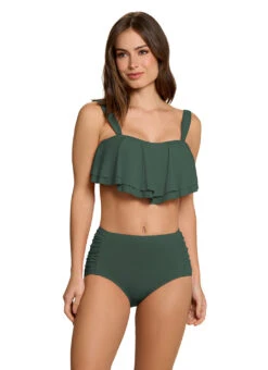 Opt for classic comfort with the Jantzen Women’s Side Shirred Solid Bikini Bottom, offering full coverage and tummy control.
