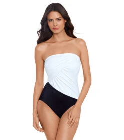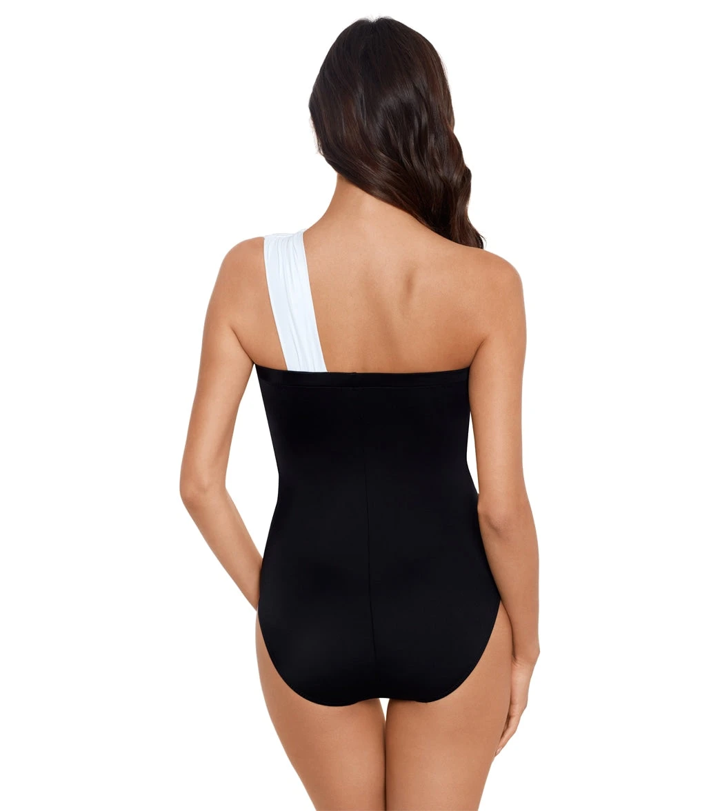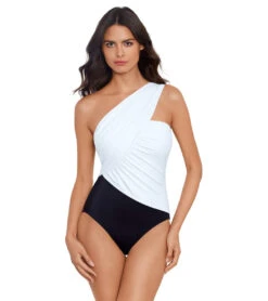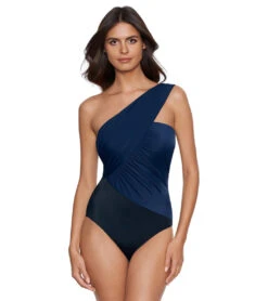Channel your inner deity in the Magicsuit Solids Goddess One Piece Swimsuit, featuring allover slimming, hidden underwire support, and a convertible one-shoulder design for a divine look.