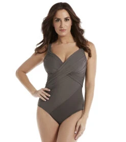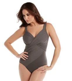 Come as you are and leave a sensational swim maven in the Miraclesuit Women’s Rock Solid Revele Underwire One Piece Swimsuit. This suit is a stunning one-piece wrapped in sophisticated splendor as a v-neckline offsets thicker set shoulder straps leading to a mid-scoop back. Drastic front shirring and draping conceal every curve you may not want to be shown while properly showcasing your unique shape. A hidden underwire leaves you supported while quality control fabric keeps you tamed, trimmed, and forever confident.
