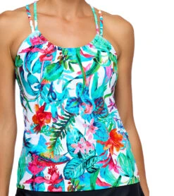 Embrace lush comfort in the Next by Athena Women’s Botanik Shirr Soft Cup Tankini Top, inspired by botanical escapes. Thoughtfully designed for coverage and support, itβs perfect for active seaside days.