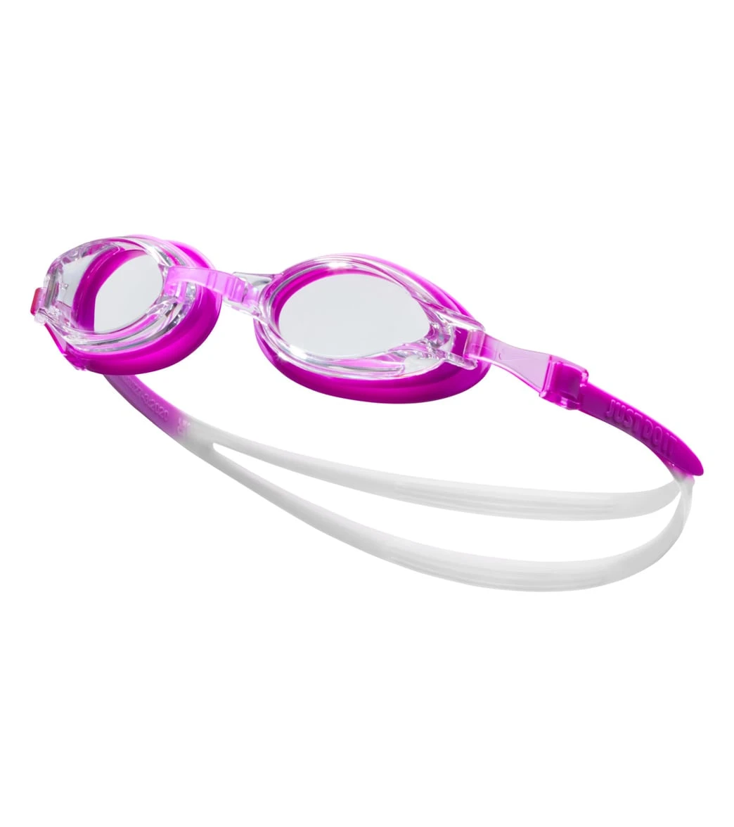 Stay ahead of the competition in the Nike Chrome Goggle, featuring a curved lens design for enhanced peripheral vision in the pool.