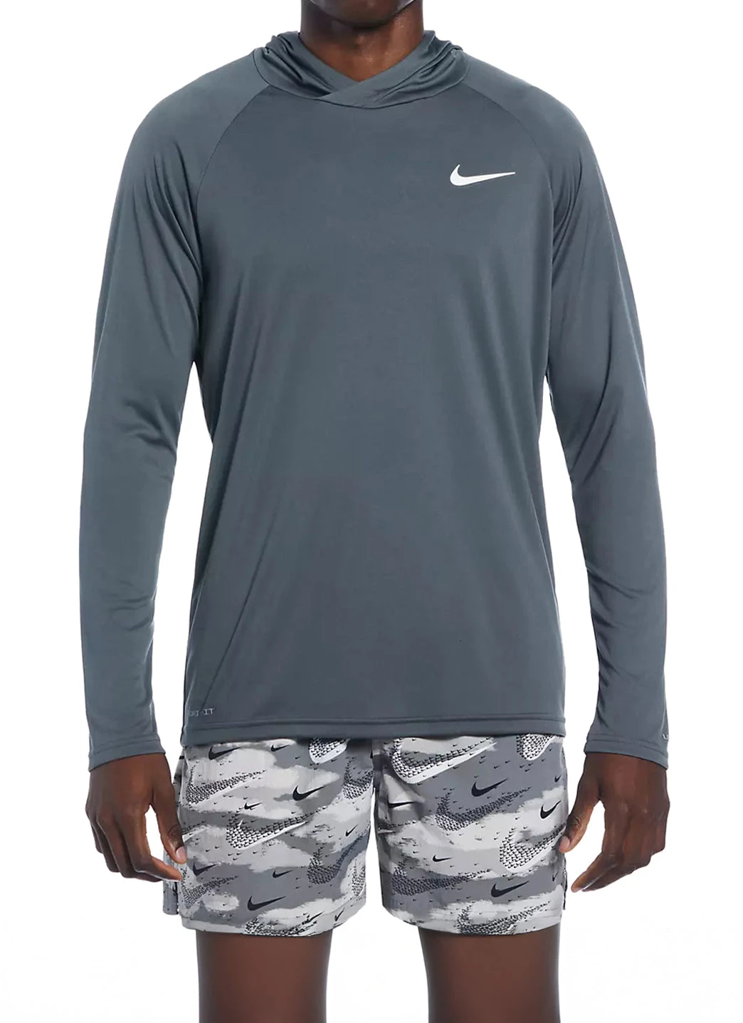 The Nike Men’s Essential Long Sleeve Hooded Hydroguard Swim Shirt delivers Nike’s cutting-edge Dri-FIT technology and UV protection, making it an essential for water workouts or long days surfing under the sun.