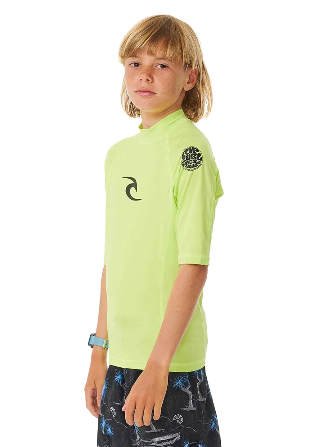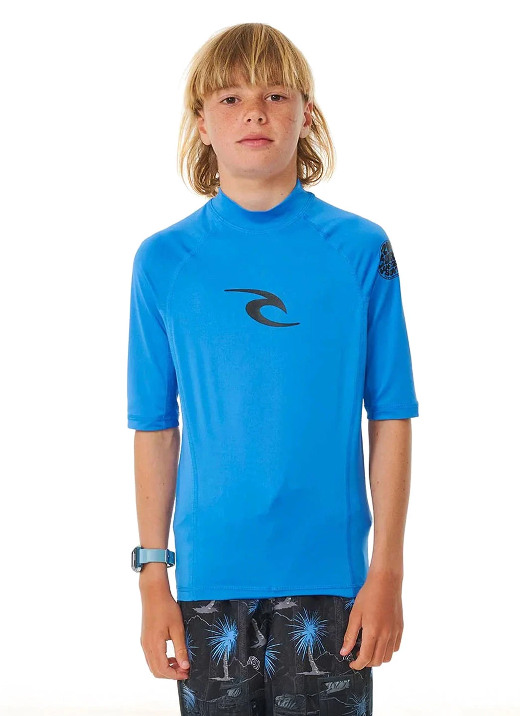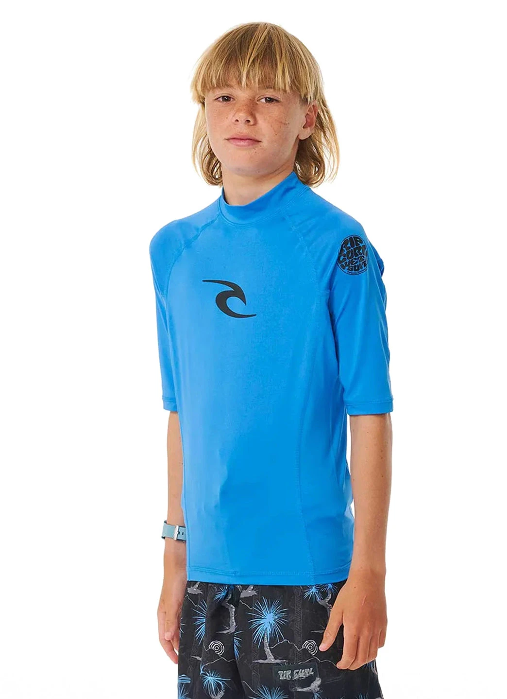 The Rip Curl Youth Brand Wave Short Sleeve UPF 50 Rashguard is all about keeping young surfers protected and stylish, a reflection of Rip Curl’s dedication to the next generation of wave chasers.