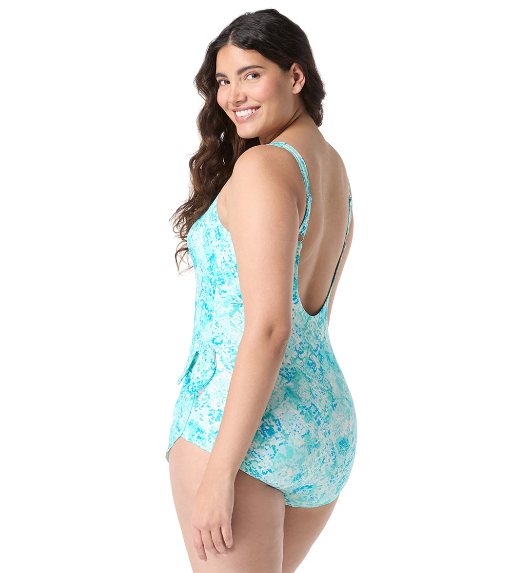 Book more trips this season with the Roxanne Bra Sized Chlorine Resistant Painted Petals V Neck Sarong One Piece Swimsuit (C/D/DD Cup).
