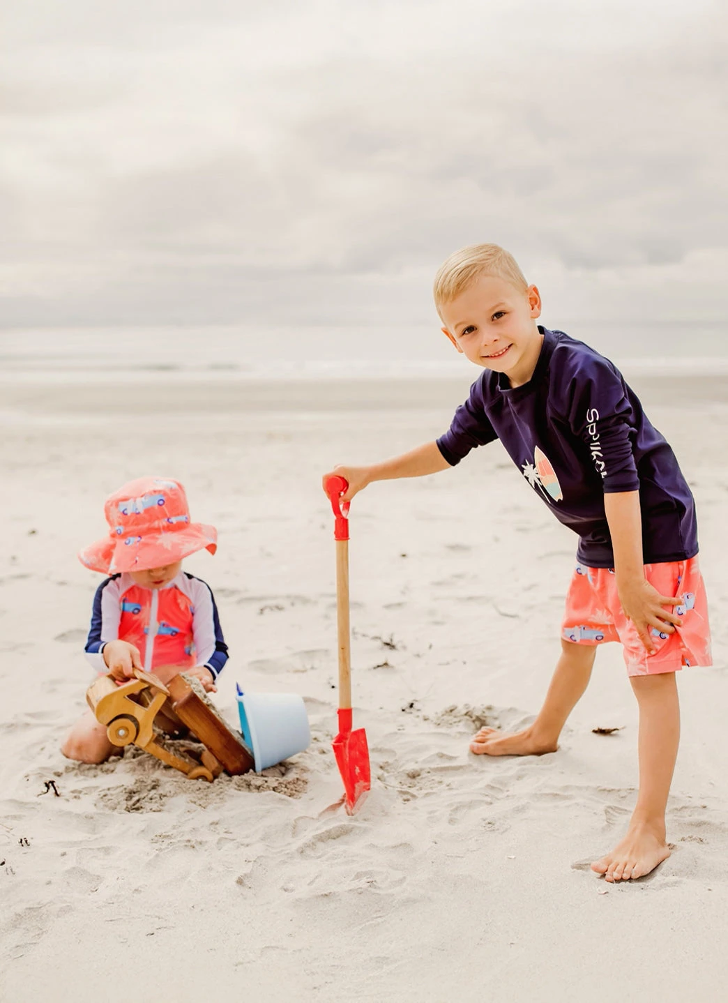 Everybody go surfing in The new Sunset Cruising Navy Rash Top. In a deep navy shade with The signature print featuring Palm Trees and Surf Board. Made in The UPF 50+ Sun Protection fabric, your skin will be protected while out catching the waves.