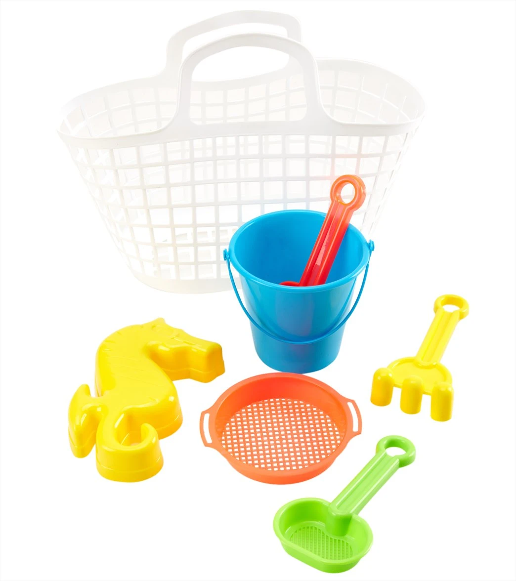 - Comes with 6 sand toys and 1 basket.