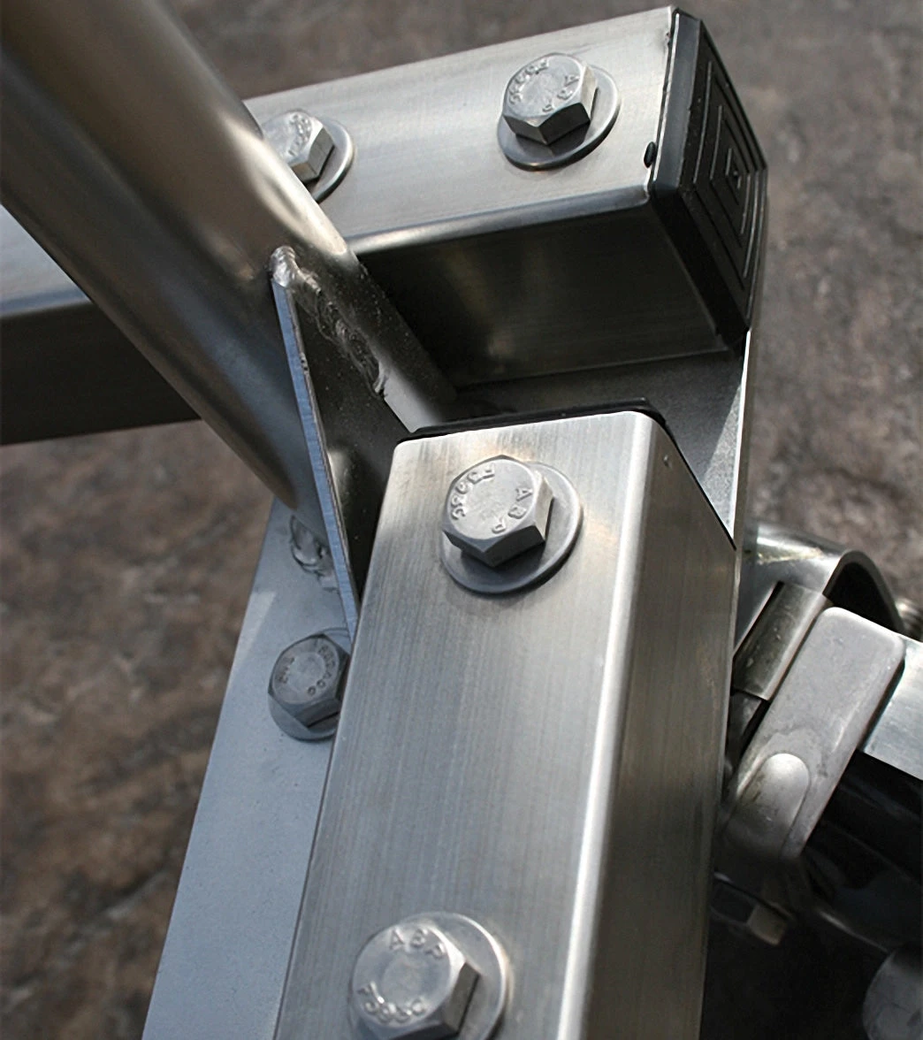 - 4″ 304L stainless steel caster wheels with locking brakes.