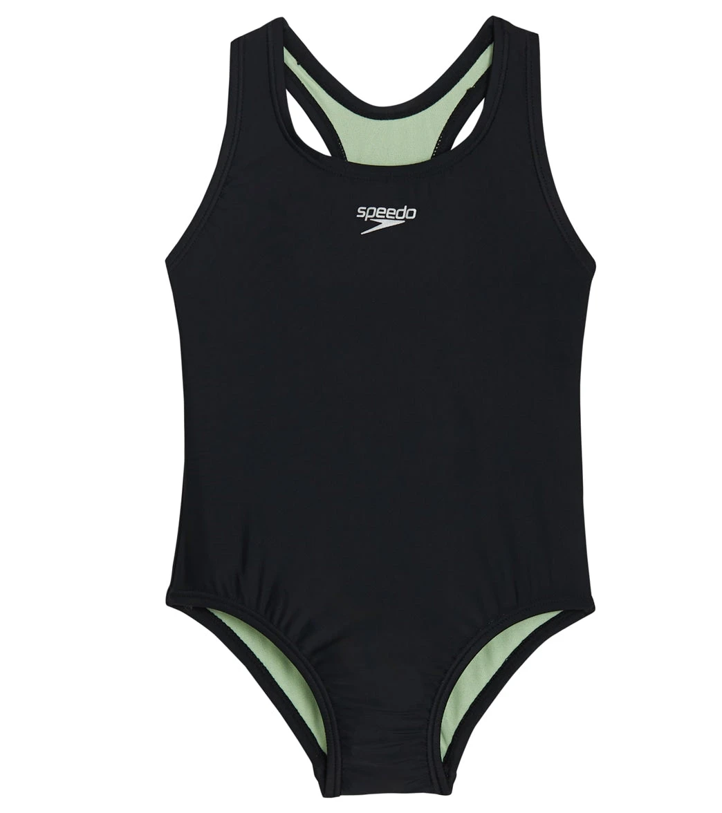 With a sporty design, the Speedo Girls’ Solid Racerback One Piece Swimsuit (Little Kid, Big Kid) promotes maximum swim efficiency.