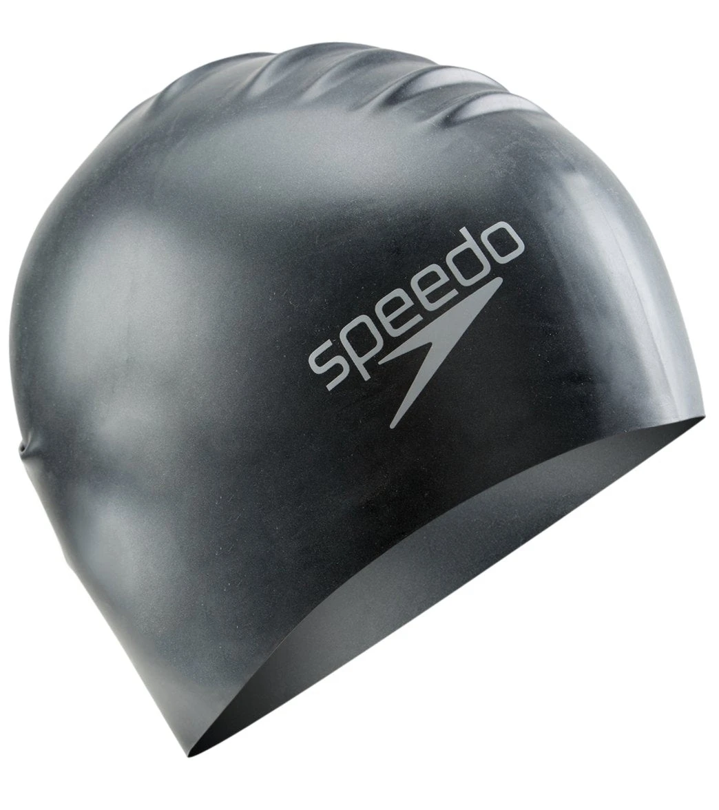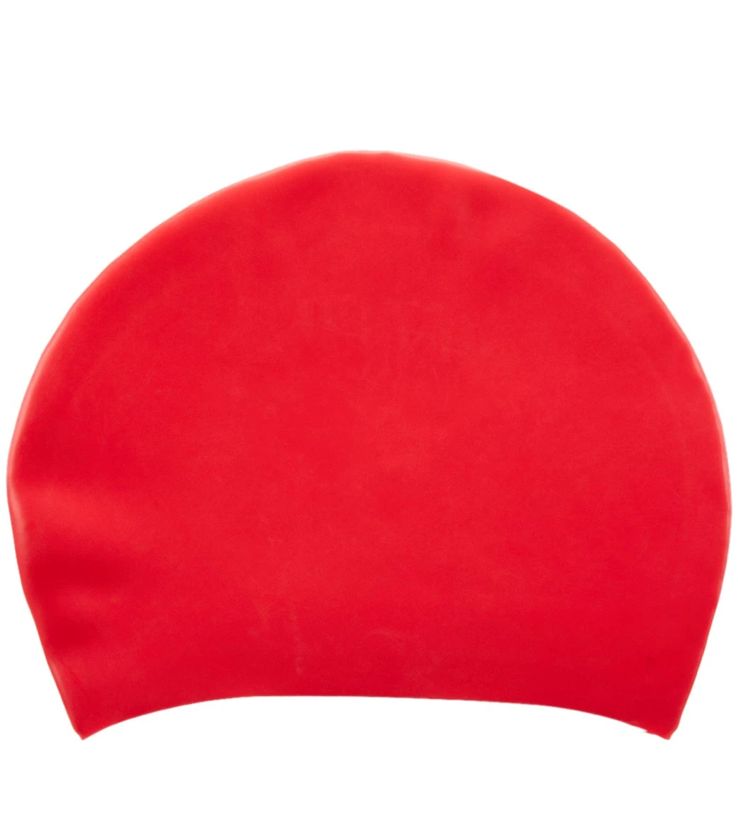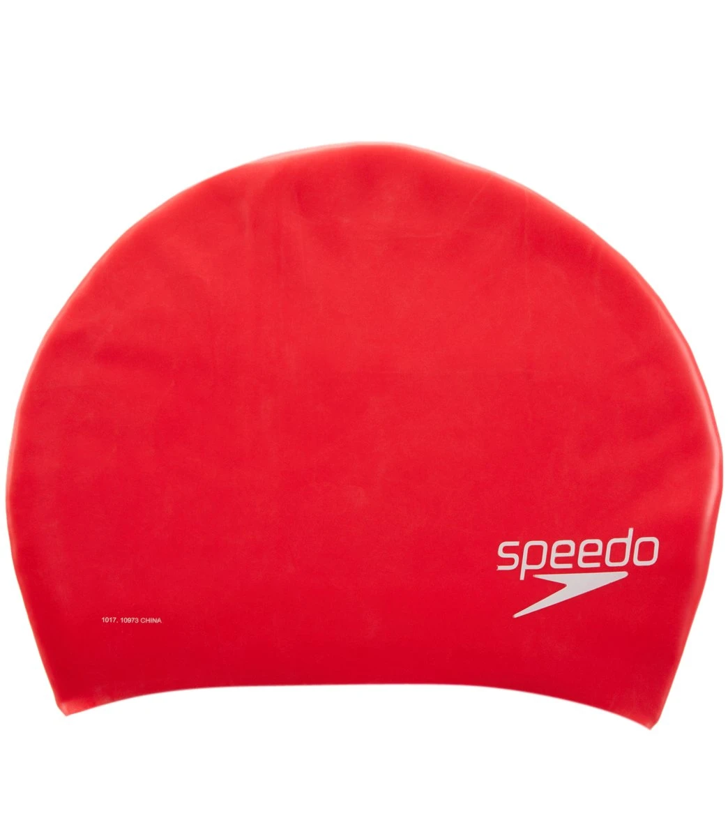 Swimmers with long hair can rejoice with the Speedo Long Hair Silicone Swim Cap. Long locks can be swept up into this cap with the extra room in the back.