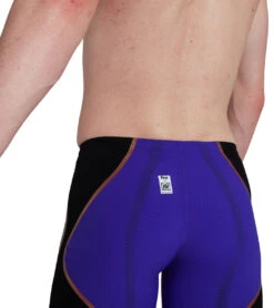 The Speedo Men’s LZR Pure Intent High Waist Jammer Tech Suit Swimsuit offers maximum compression for maximum power and speed. Go faster than fast in Pure Intent, inspired by the world’s fastest sprinters. Unique triple-fabric construction is engineered to enhance both compression and flexibility, while micro vortices created by shark skin-mimicking texture and an updated waistband reduce drag.