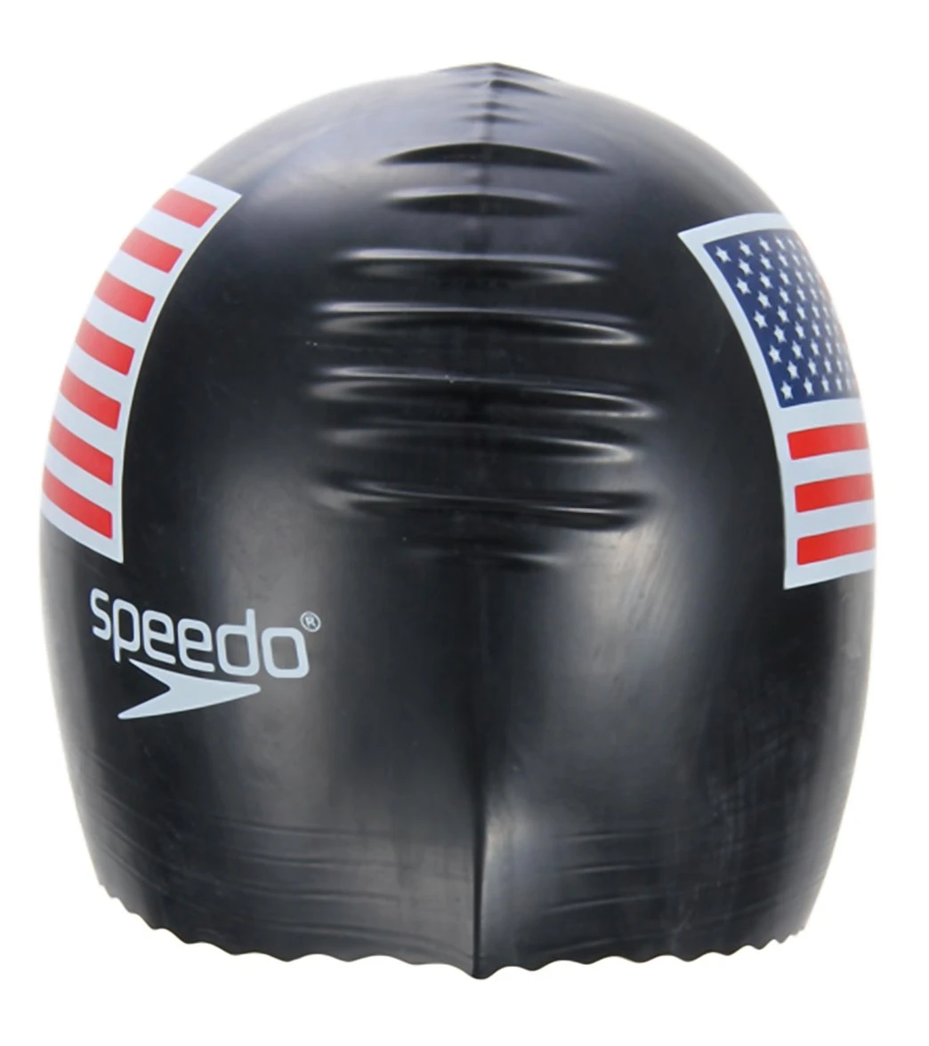 Support team USA with the printed flag design on both sides of the Speedo USA Flag Latex Cap.