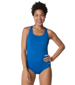 Keep your look simple with this essential Speedo Women’s Contemporary Ultraback One Piece Swimsuit. Its minimalist design features sewn-in soft cups and fixed crisscross back straps. Made from recycled fabric that resists chlorine and piling, this one-piece is finished with UPF 50+ for built-in sun protection.