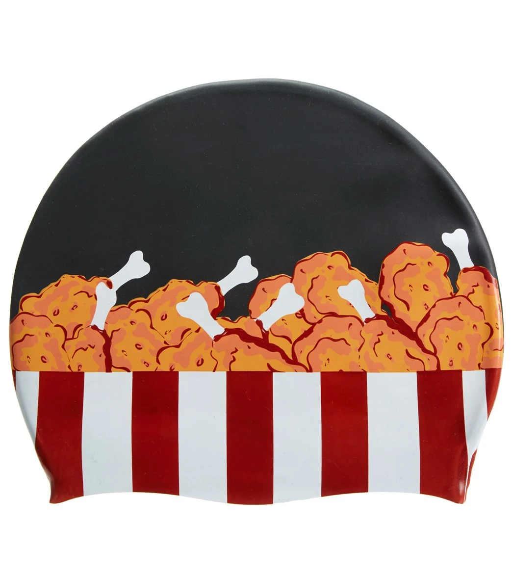Show your love of food in the pool with the Sporti Fried Chicken Silicone Swim Cap. Featuring a design that is gentle on hair and utilizes an anti-slip interior, this fun swim cap stands out in the pool.