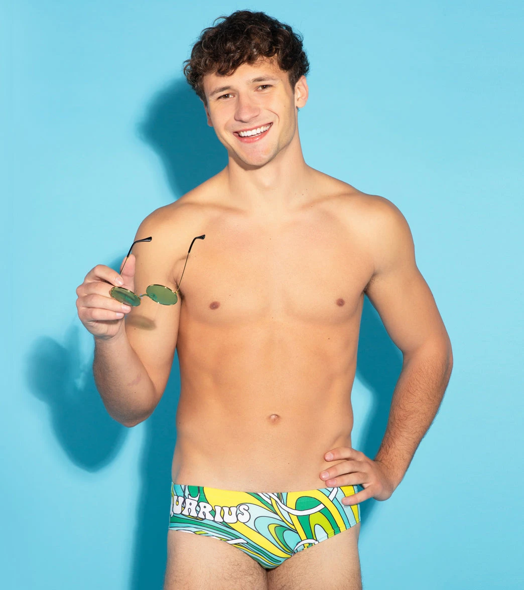 Embrace the power of the stars wearing the Sporti Groovy Zodiac Aquarius Brief Swimsuit. This suit includes an adjustable drawstring waist, a comfortable front lining, and flat seams to reduce chafing. The brief style provides minimal coverage, effectively reducing tan lines and maximizing movement. Let your horoscope guide your strokes to be smooth and powerful throughout your laps.
