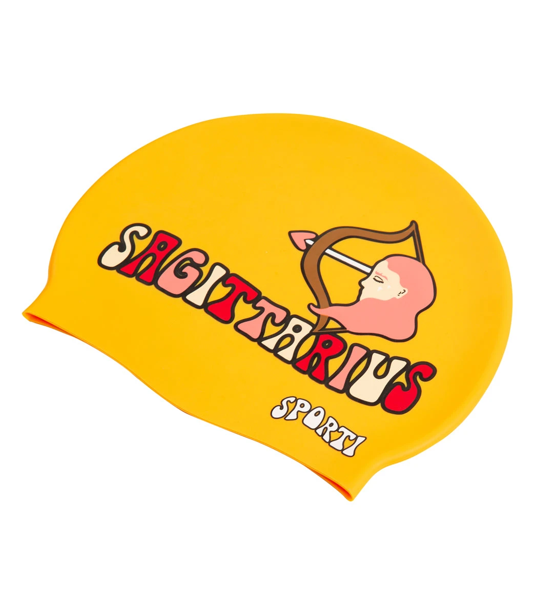 Embrace the power of the stars wearing the Sporti Goovy Zodiac Sagittarius Silicone Swim Cap. Its streamlined shape reduces drag, and the snug fit protects your hair from chlorine. Additionally, it helps keep your hair tangle-free and goggles securely in place, allowing you to fully focus on the lap ahead.