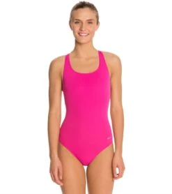 Perfect for all kinds of training, competition, water aerobics and fitness swimming, this long-lasting one-piece suit offers the comfort and fit you’ve been looking for. The Sporti HydroLast Solid Wide Strap Swimsuit is a high-quality option for those that want the features of all of the suits that the professionals use. Made with polyester and spandex, this long-lasting suit is great for as much swimming as you want.