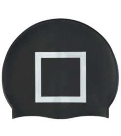 - Square shape printed on both sides of swim cap.