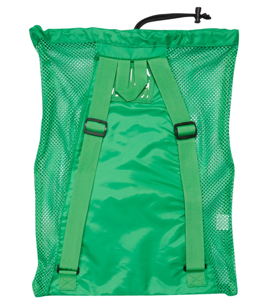 The Sporti Premium Mesh Backpack is perfect for fins, pull buoys, swimsuits and towels, this bag has backpack-style straps with a handle above for comfortable transportation.