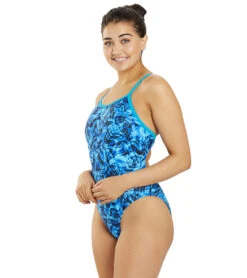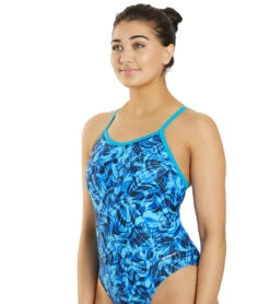 Brighten up the pool with the Sporti Sonic Bloom Thin Strap One Piece Swimsuit. Its eye-catching print makes a bold statement while the thin straps offer both style and comfort. This swimsuit is an invitation to have fun and stand out with every splash and stroke.