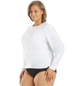 Paddle out in the Sporti Women’s Plus Size L/S UPF 50+ Comfort Fit Rash Guard. This rash guard has a classic look and comfortable feel. Perfect to wear over your bikini top for extra sun protection.Â