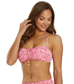 The Island Cays Shell Beach Tie Front Bandeau Bikini Top is a flirtatious piece that adds a twist to your swim ensemble.