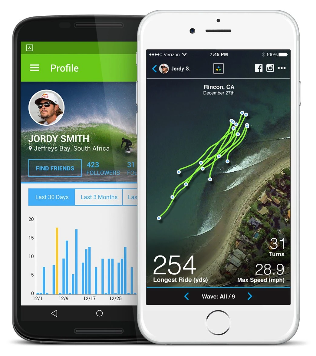 - Measures your top turns, bottom turns, cutbacks, and roll angle to within 3 degrees.