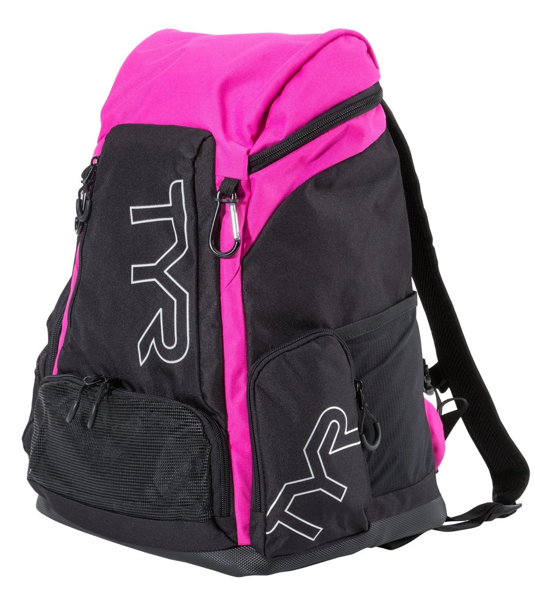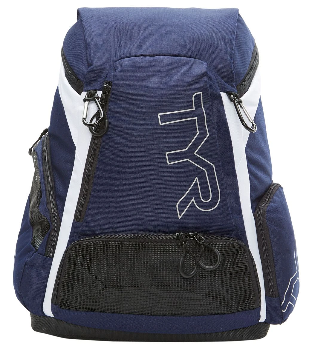The TYR Alliance 30L Backpack offers a modern take on a classic, packed with innovative features for on-the-move athletes. Its space-efficient design maximizes storage without bulkiness. Key features include ergonomic, contour-shaped padding for lumbar comfort, multiple front and side pockets, and expandable mesh sections for separating wet and dry gear. It also includes hooks for wetsuits, a mesh pocket for water bottles, adjustable straps, and a dedicated area for protecting large electronics.