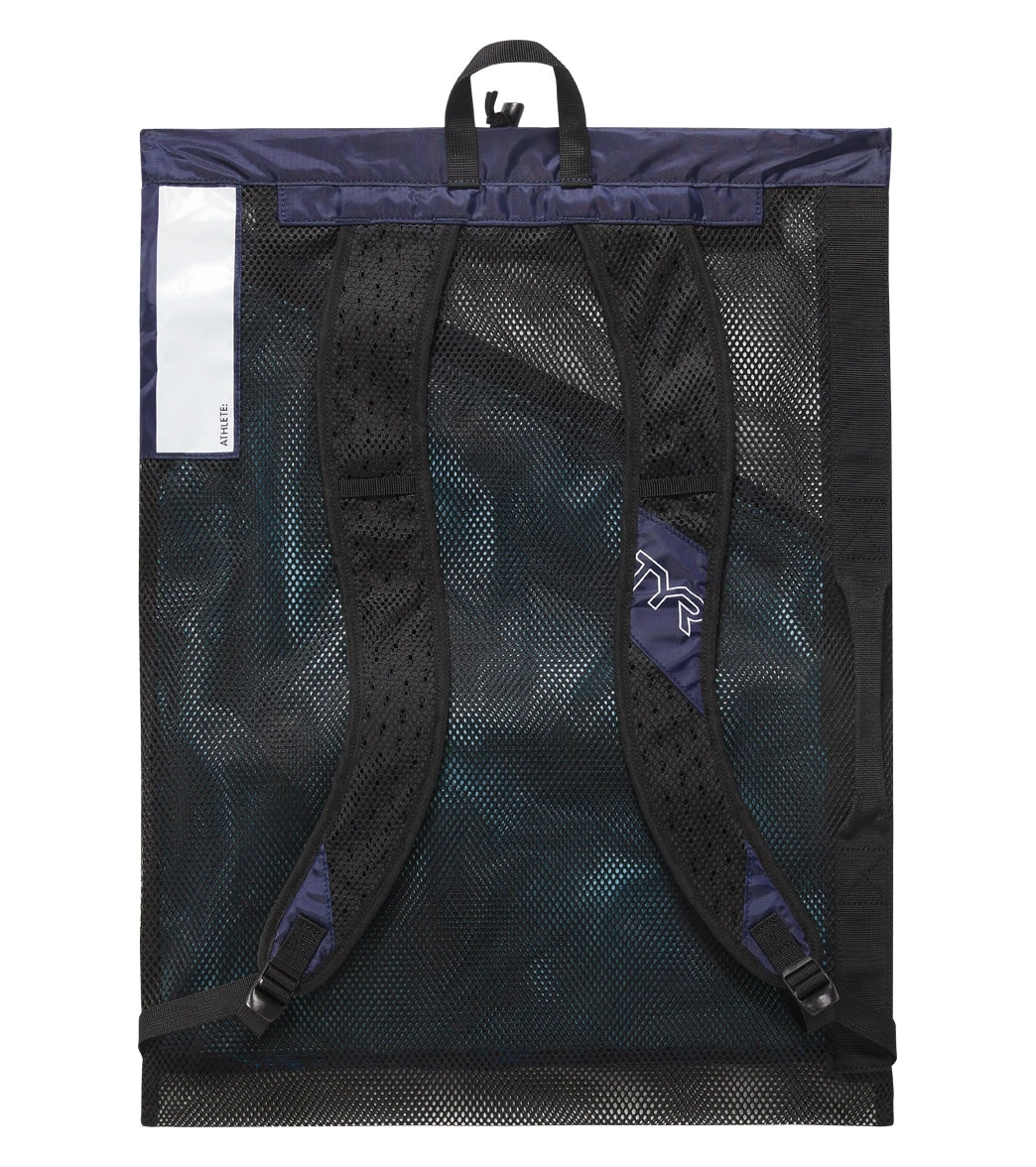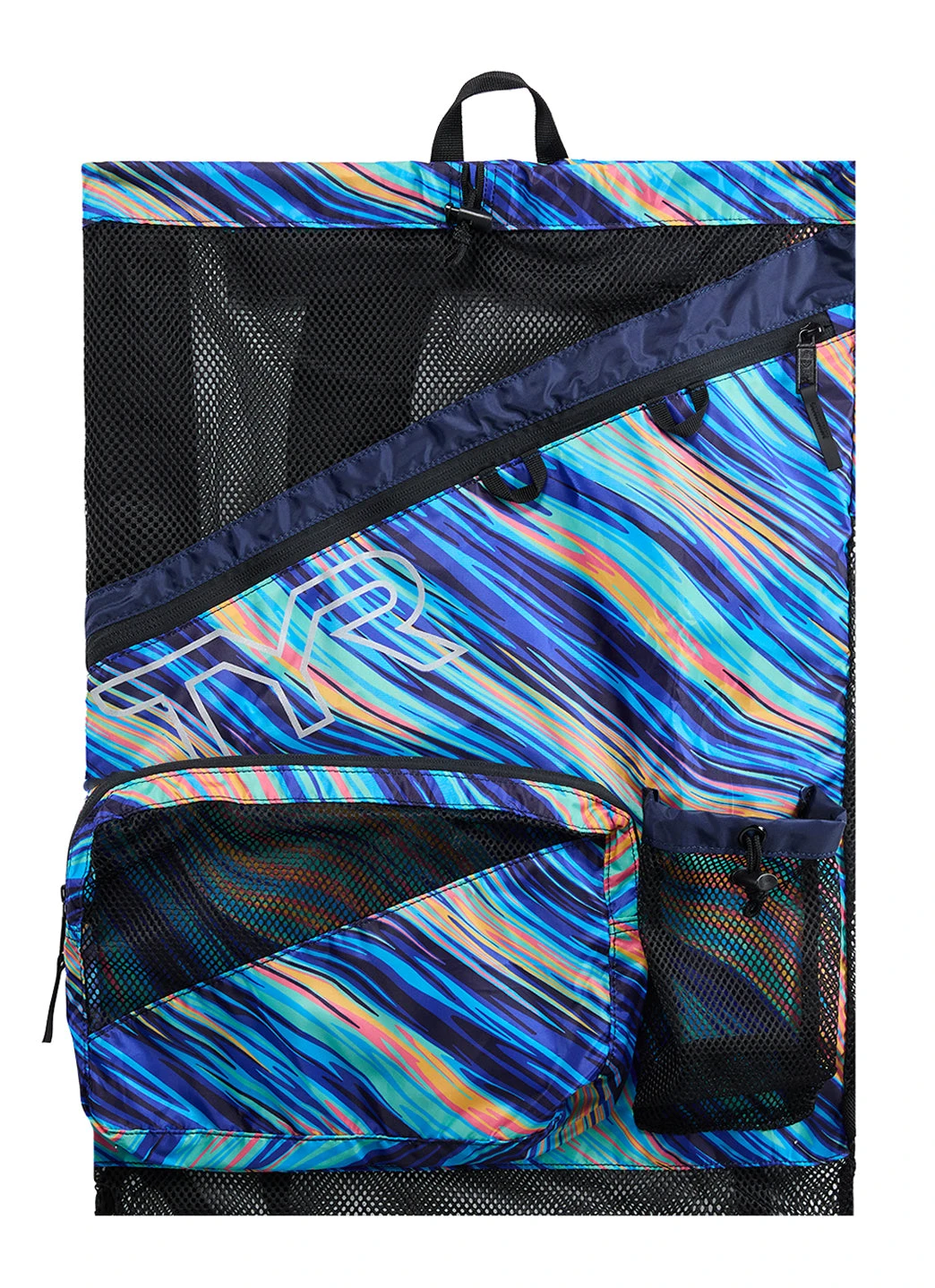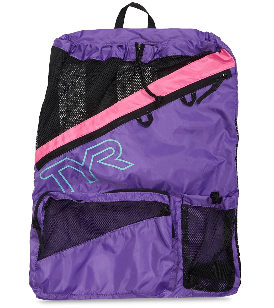 The TYR Elite Team Mesh Backpack is the perfect choice for hauling swim and workout gear. The backpack features mesh venting for increased dry time and drainage. The adjustable, ventilated padded should straps allow for easy transport and versatile carrying options. Includes large secondary compartment and gear loops for additional storage.