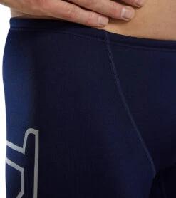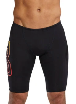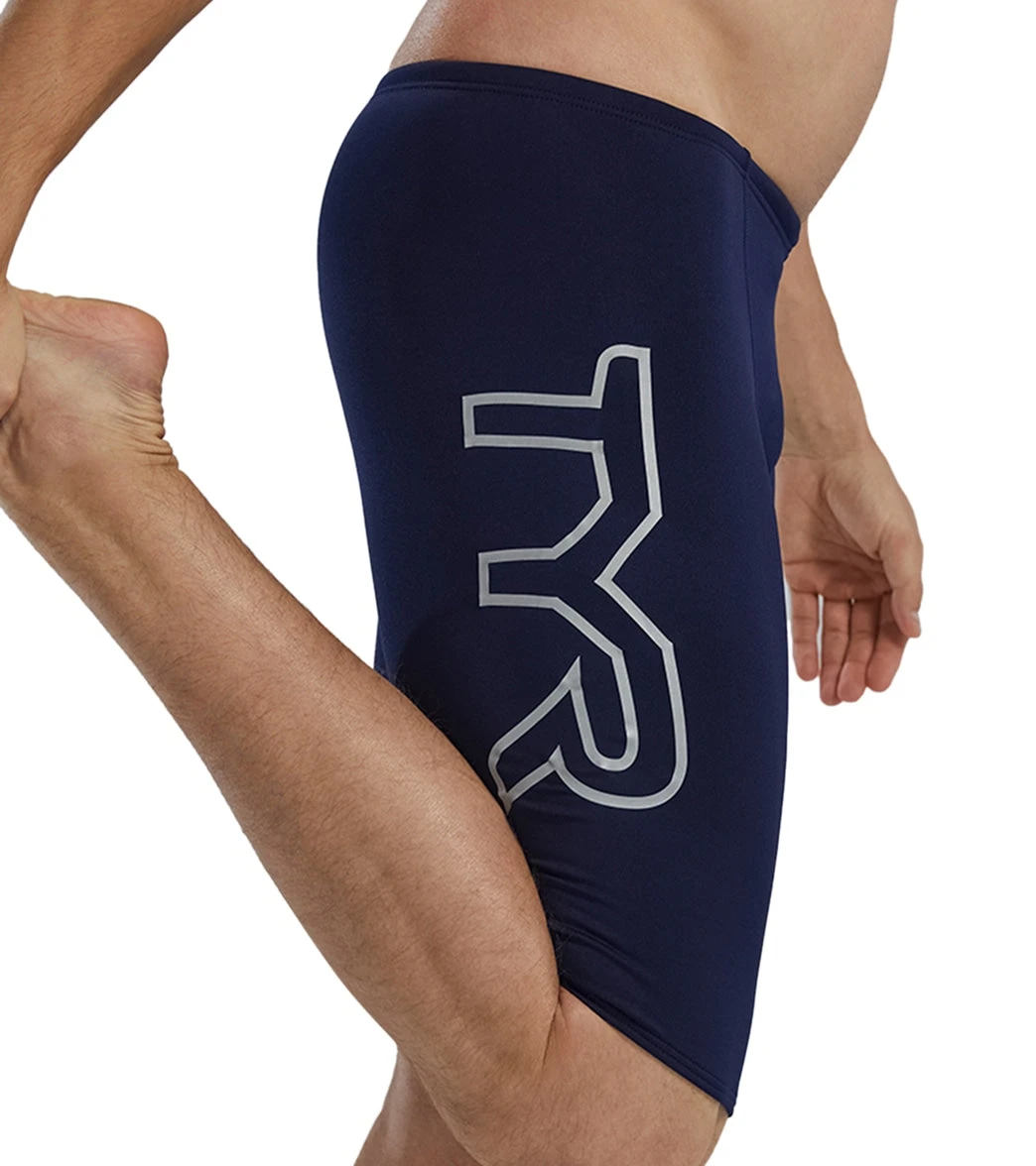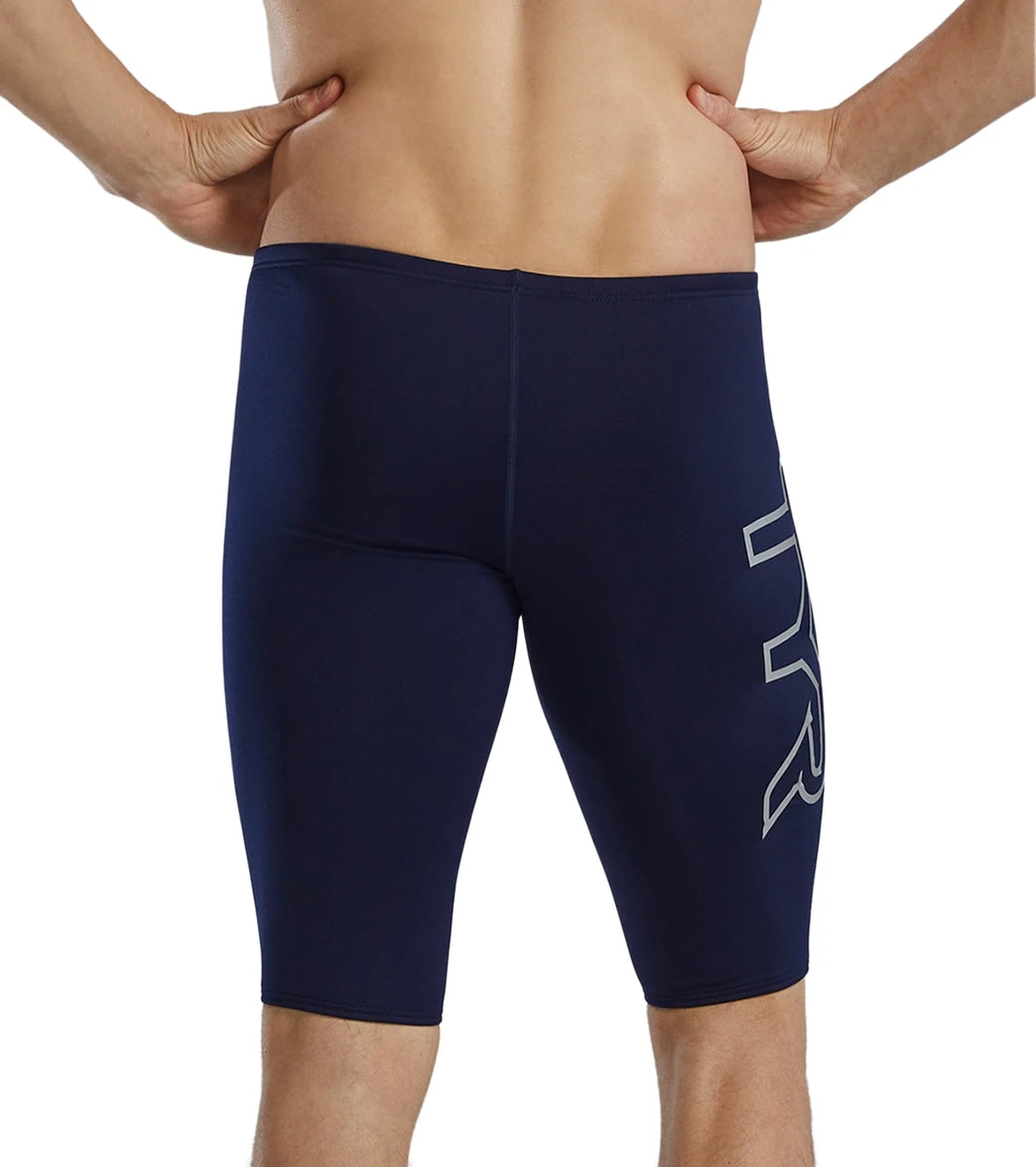 The TYR Men’s Large Logo Jammer Swimsuit, fully lined and chlorine-proof, promises an uncompromisingly sporty appeal with its championship cut and colorfast design.