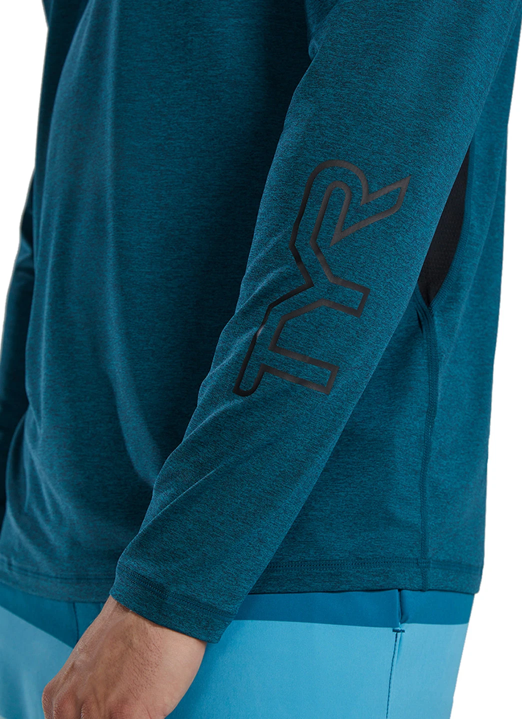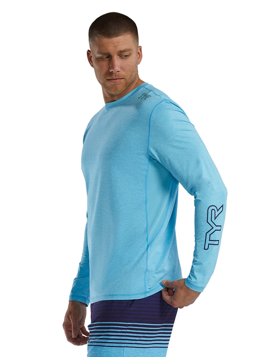 Stay ready for action in the TYR Men’s Solid SunDefense Long Sleeve UPF 50+ Swim Shirt, featuring sun protection and lightweight flexibility for long days outdoors.