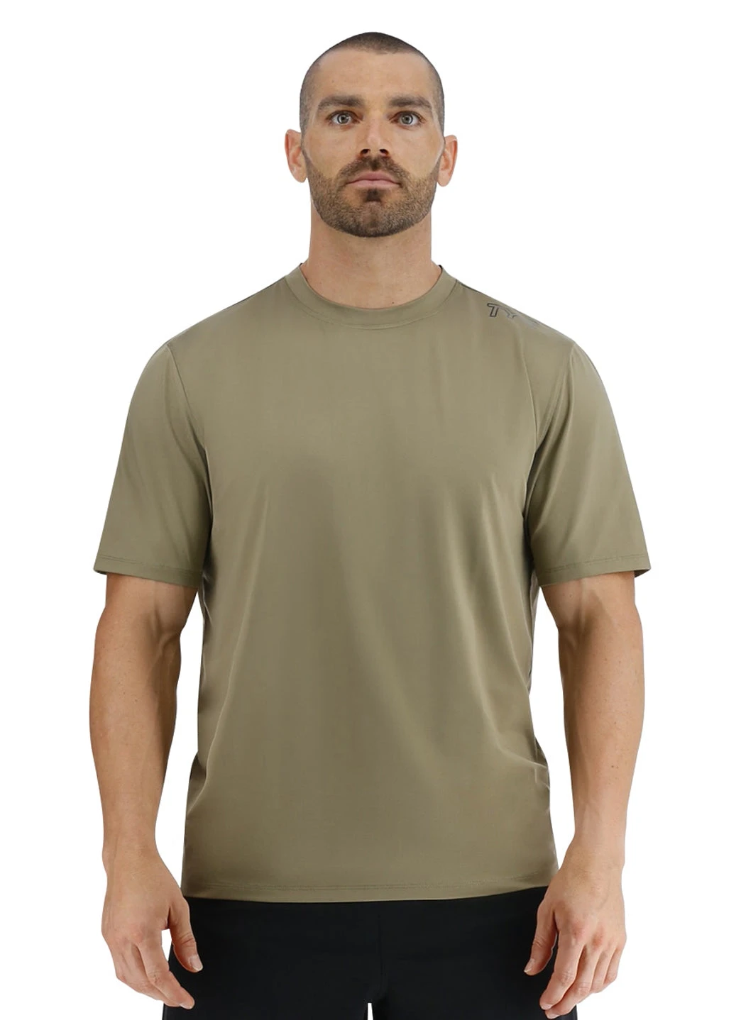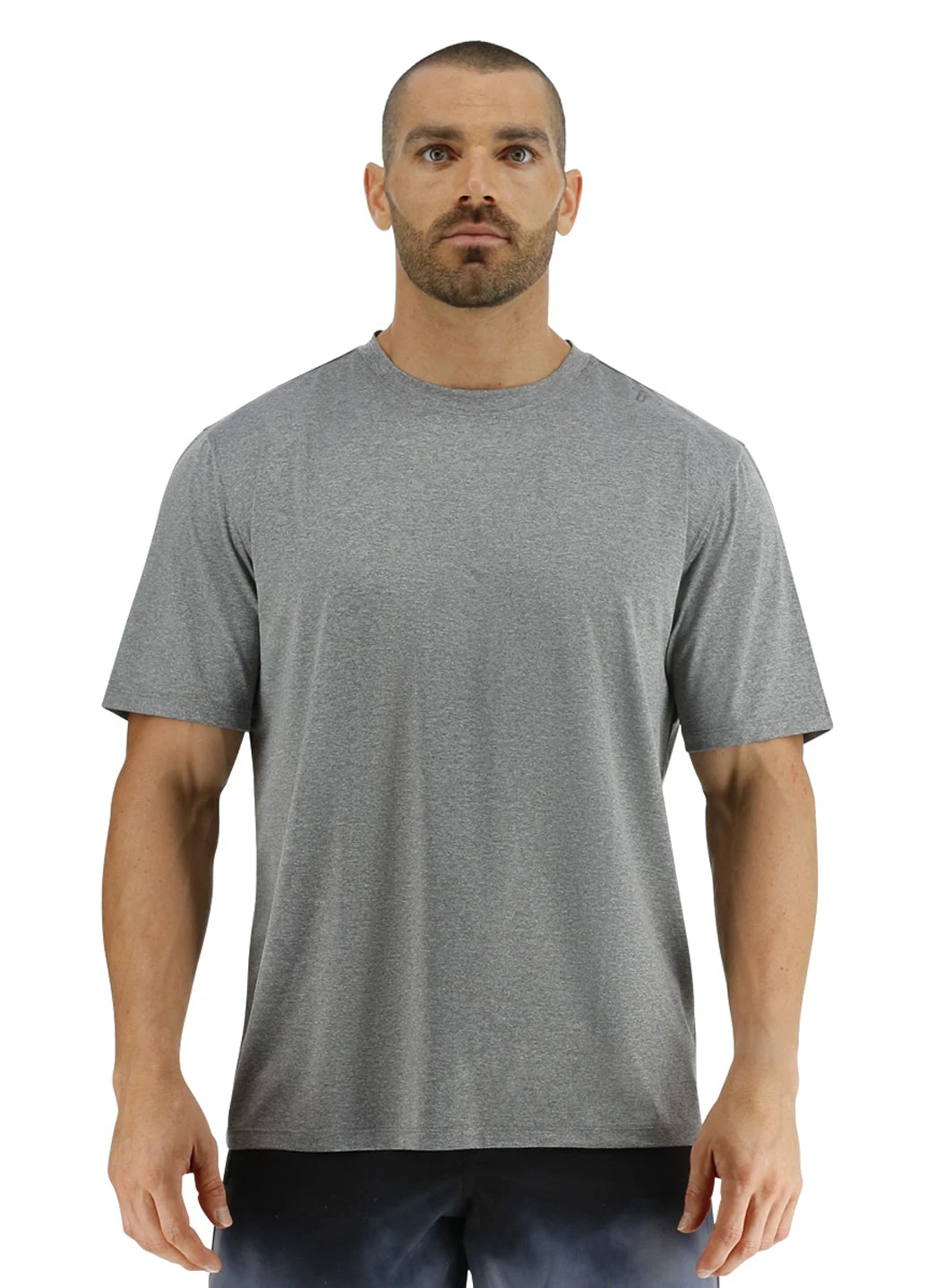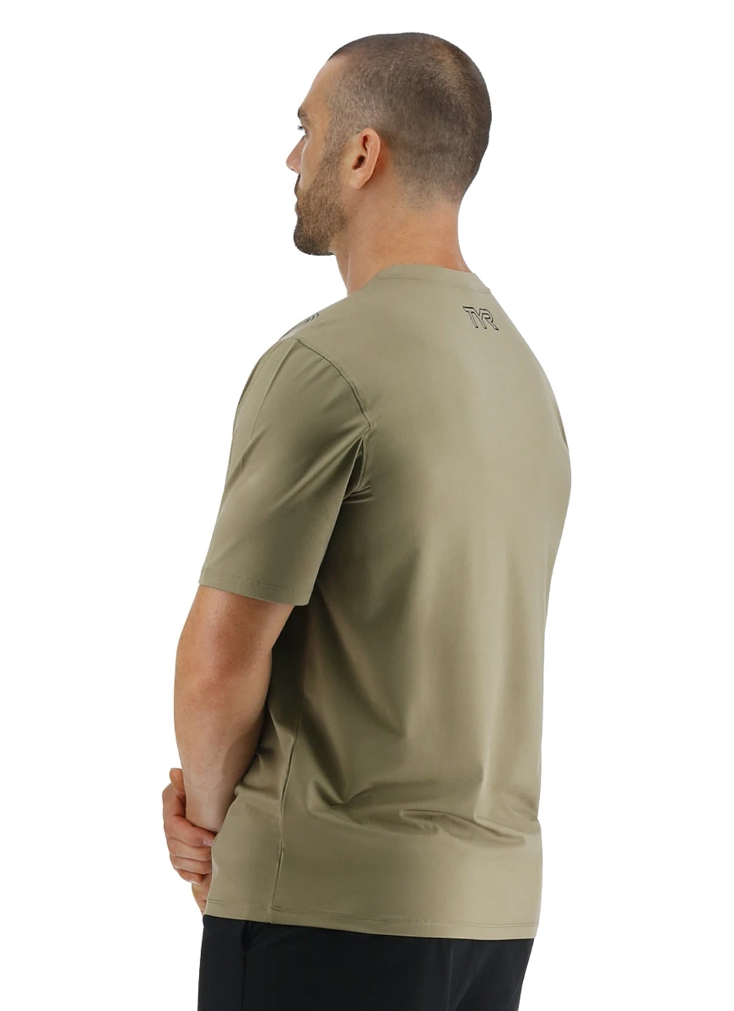 Paddle out in the TYR Men’s SunDefense Short Sleeve UPF 50+ Swim Shirt featuring sun protective fabric.