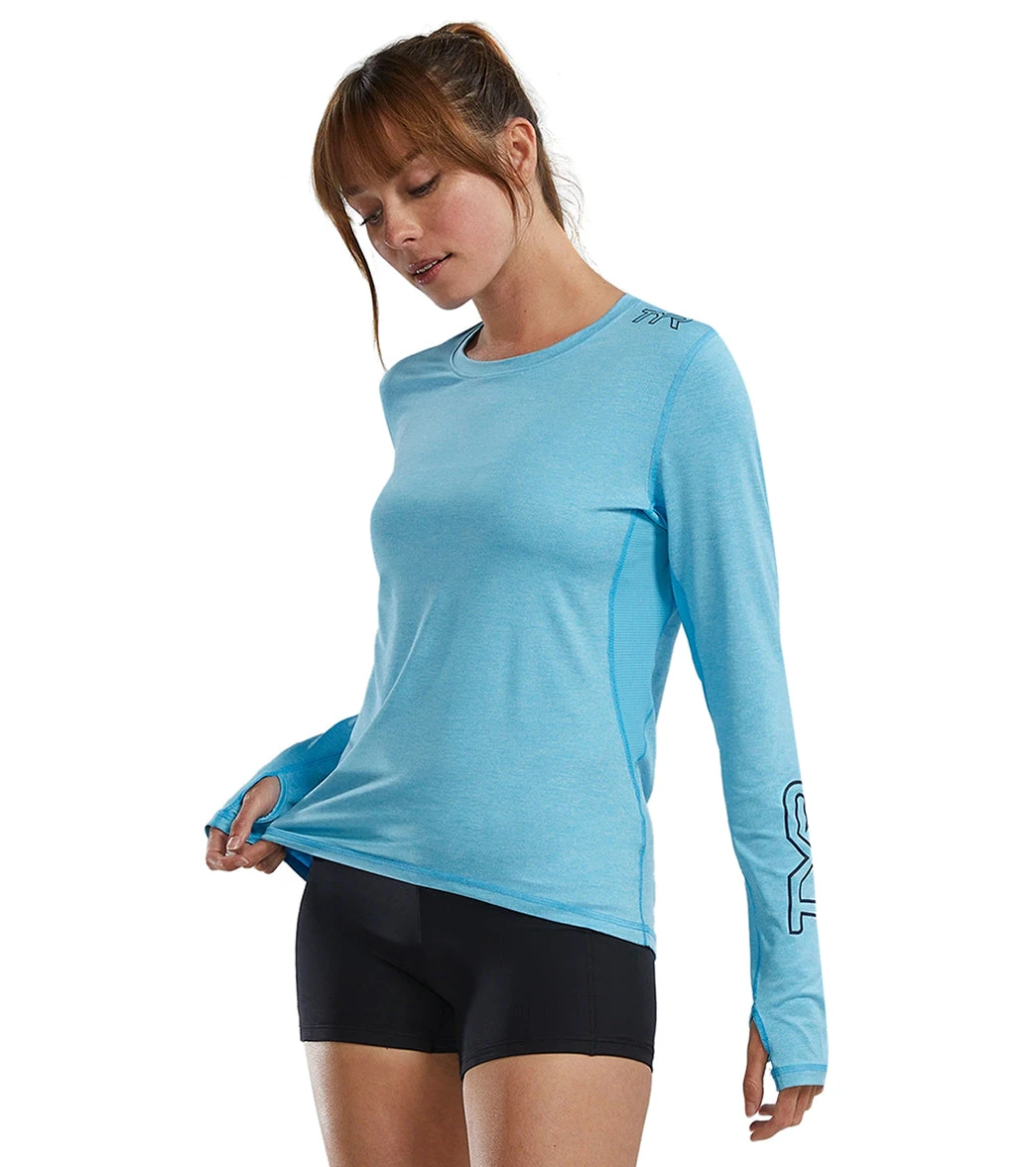 The TYR Women’s SunDefense Vented Long Sleeve UPF 50+ Swim Shirt offers the ultimate in sun protection and comfort, making it essential for any outdoor water activity.