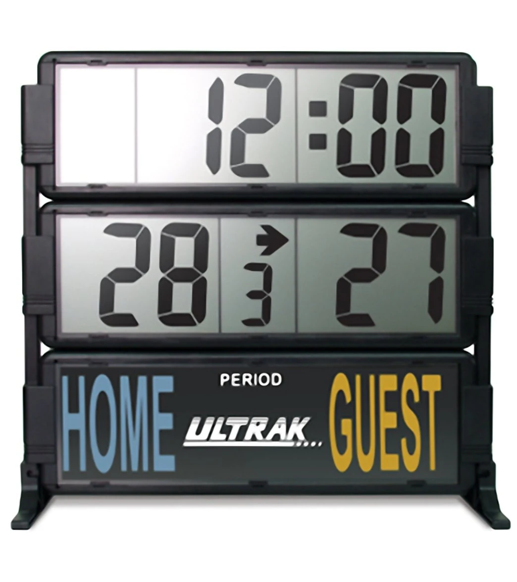 An enhanced version of the Ultrak SCOR, the T-300 has added periods and a possession arrow. This model also features a set/point mode, which is perfect for scoring water polo games. A large, easy-to-read display, battery operation and remote control add convenience to this water polo display board. The T-300 also features dual countdown timers that can be used for interval and pace training.