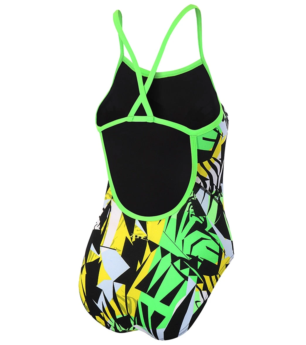 The Zone3 Girls High Jazz 2.0 Strap Back Swimsuit blends a modern print with XFINITY endurance fabric for an unbeatable combination in the pool.